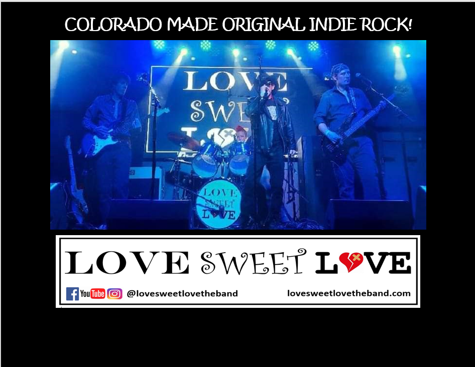 Love Sweet Love is an indie rock band that brings its Colorado made original music to the stage! Inspired by classic alternative music, Love Sweet Love delivers fresh, original tunes sprinkled with well-known songs. As a band, the members of Love Sweet Love pour their hearts into every note. Love Sweet Love brings it all for the audience! We just released our debut e.p. Right Here, on Spotify, Amazon Music, Pandora, Apple Music, YouTube, YouTube Music and many other streaming platforms. We'd Love Sweet Love for you to check us out!